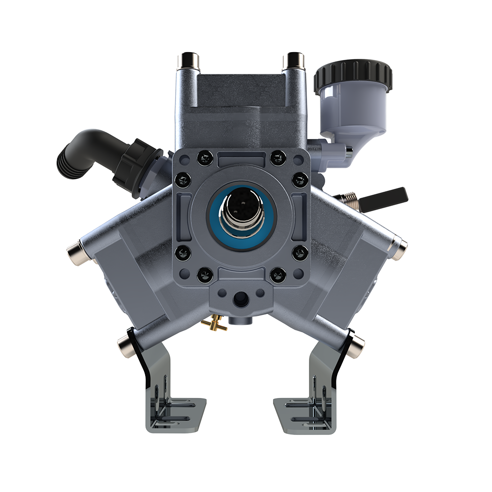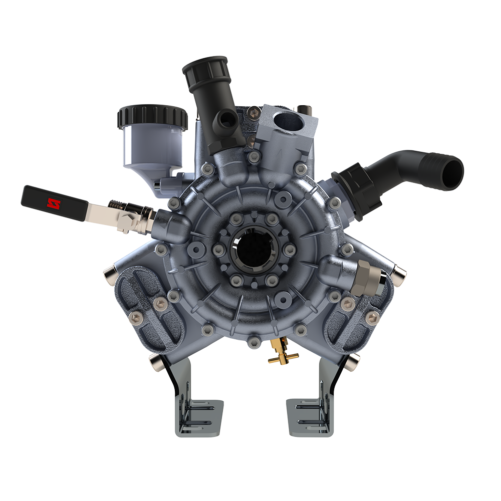 Turbo crankshaft systems are generally used in models with pulleys. In this design, a pulley is mounted on the pump and connected to the fan system using a belt. The power from the tractor drives both the pump and the fan simultaneously, via the pulley and belt.