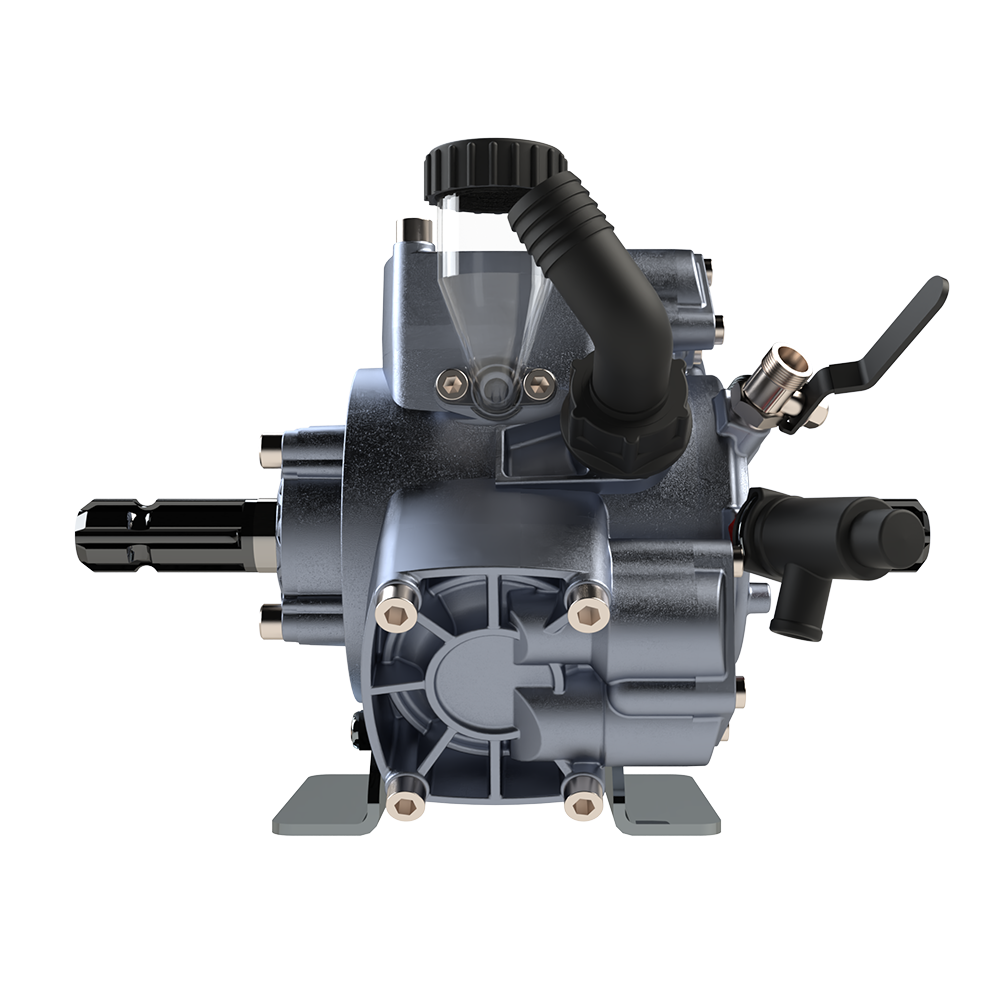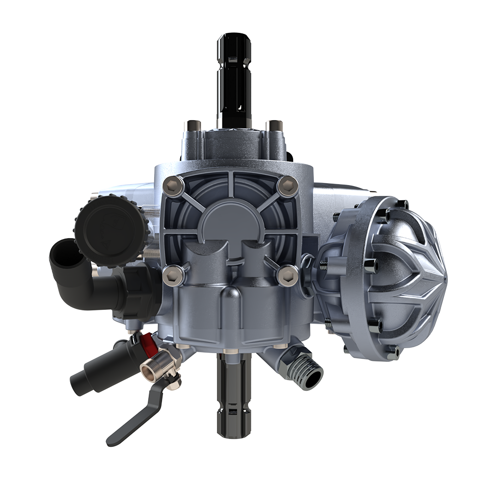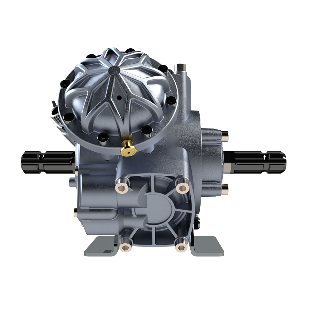 Çift frezeli pompalar şanzımanlı turbo makinelerde kullanılır. Bu sistemde hareket önce traktörden pompaya iletilir. Pompa çıkışından sonra şaft aracılığıyla şanzımana, oradan da makineye aktarılır. Şanzıman, bu süreçte devri ayarlayarak makinenin ihtiyaç duyduğu uygun hızda çalışmasını sağlar.