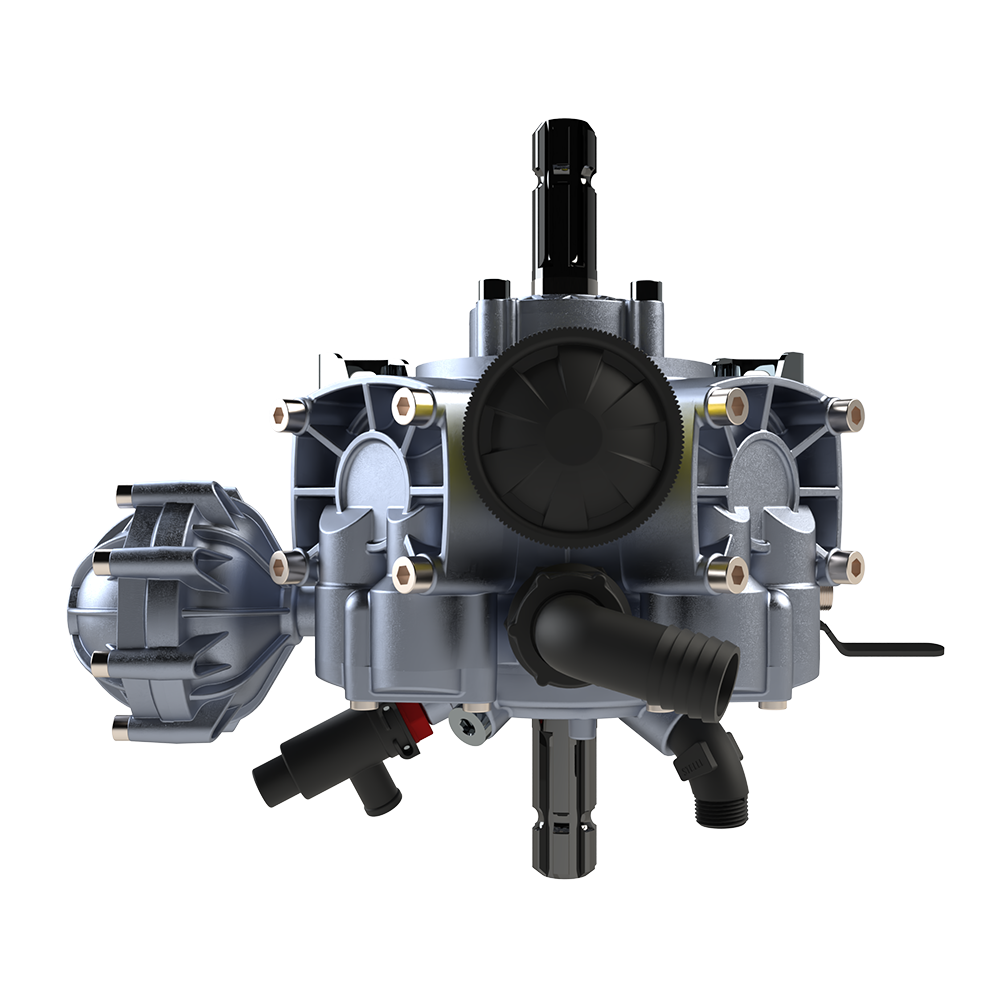 Çift frezeli pompalar şanzımanlı turbo makinelerde kullanılır. Bu sistemde hareket önce traktörden pompaya iletilir. Pompa çıkışından sonra şaft aracılığıyla şanzımana, oradan da makineye aktarılır. Şanzıman, bu süreçte devri ayarlayarak makinenin ihtiyaç duyduğu uygun hızda çalışmasını sağlar.