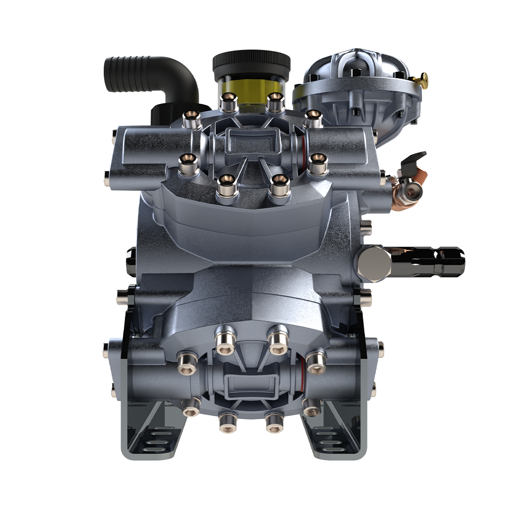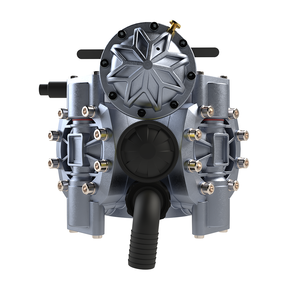Pompalarda; sistem basıncını güvenli sınırlar içinde tutmak için entegre emniyet valfi ve hava tüpü (standart), bazı pompalarda bakım ve tahliye işlemleri için boşaltma tapası, kış şartlarında kullanım için antifrizli su takviyesi imkanı, galvaniz kaplı metal bağlantı elemanları, NBR malzemeden o-ringler ve diyaframlar bulunmaktadır. Pompalanan sıvılarla temas eden tüm parçalar anodize alüminyum ve AISI 303/304 paslanmaz çelikten imal edilmiştir.