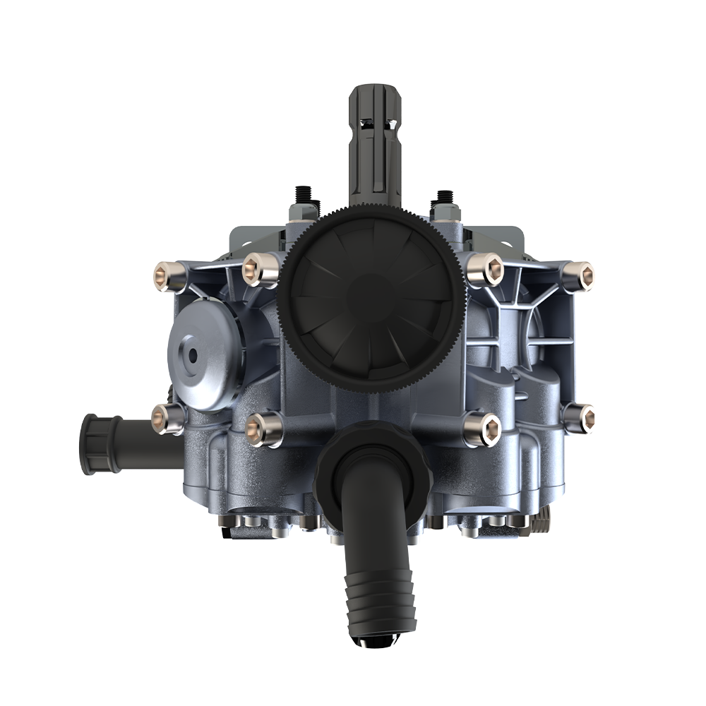 Çift frezeli pompalar şanzımanlı turbo makinelerde kullanılır. Bu sistemde hareket önce traktörden pompaya iletilir. Pompa çıkışından sonra şaft aracılığıyla şanzımana, oradan da makineye aktarılır. Şanzıman, bu süreçte devri ayarlayarak makinenin ihtiyaç duyduğu uygun hızda çalışmasını sağlar.
