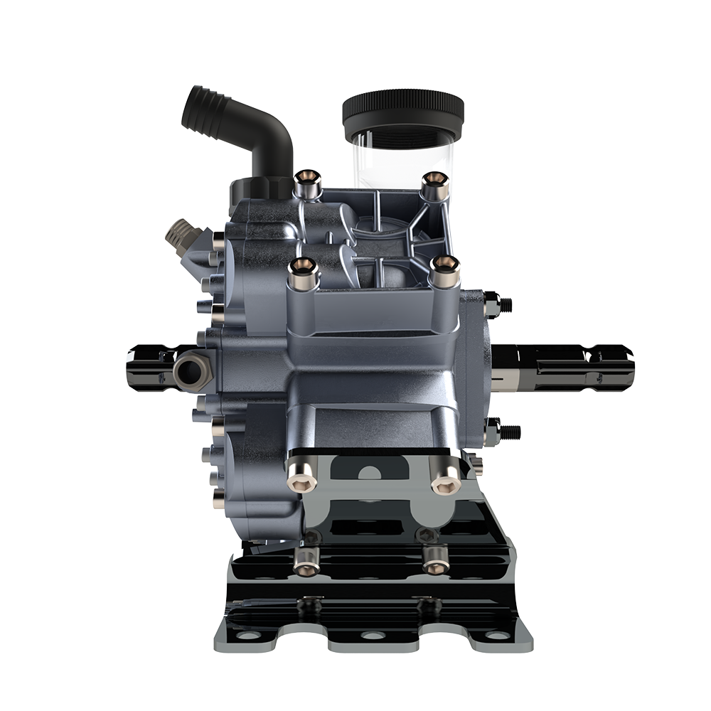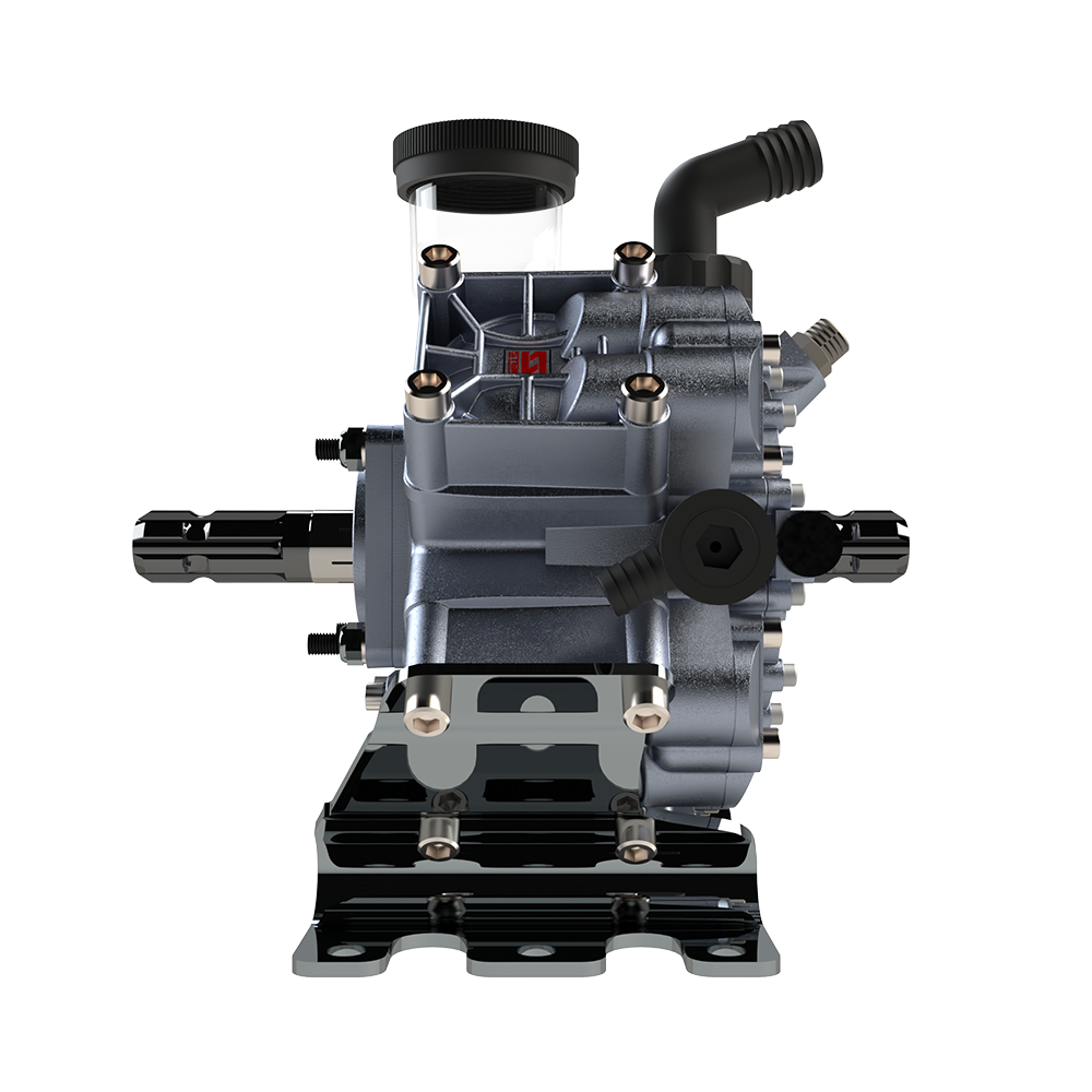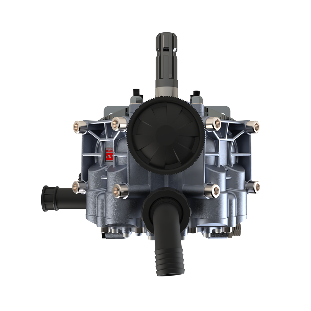 Çift frezeli pompalar şanzımanlı turbo makinelerde kullanılır. Bu sistemde hareket önce traktörden pompaya iletilir. Pompa çıkışından sonra şaft aracılığıyla şanzımana, oradan da makineye aktarılır. Şanzıman, bu süreçte devri ayarlayarak makinenin ihtiyaç duyduğu uygun hızda çalışmasını sağlar.
